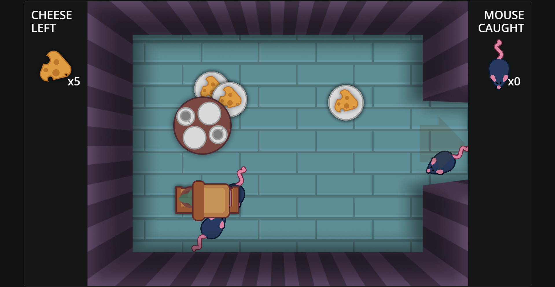 How the theme was executed in this game: I worked around more on the idea of protection/cover as the definition of the mask. This was portrayed using the furniture as the covers for the mice. The cheese were also used as a portrayal for the mask with the idea of "illusion" or not true since for the mouse it is a food, but in reality it was being used as a bait to catch them.